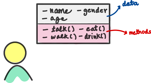 If we want to use the data stored in an object to perform an action or calculate a derived value, we define a method associated with the object which does this. Then whenever we want to perform this action we call the method on the object. We consider it bad practice to retrieve the information from inside the object and write separate code to perform the action outside of the object.